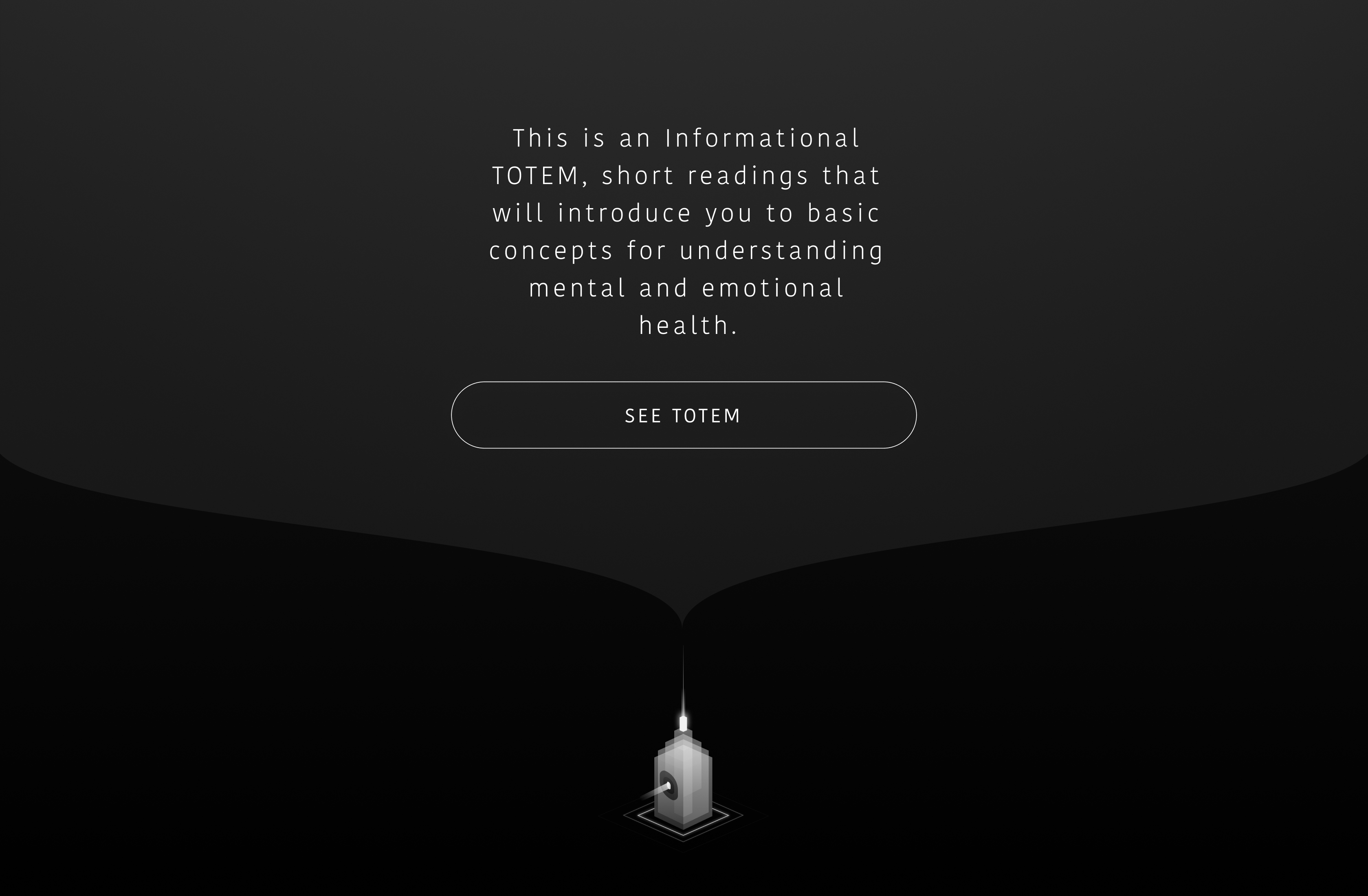 Different totem types were designed for the full version, each with a different function in the world: informative, discussion-based, event-based. The prototype established the informative type as the foundation. The logic of the others would follow from the same spatial principle.